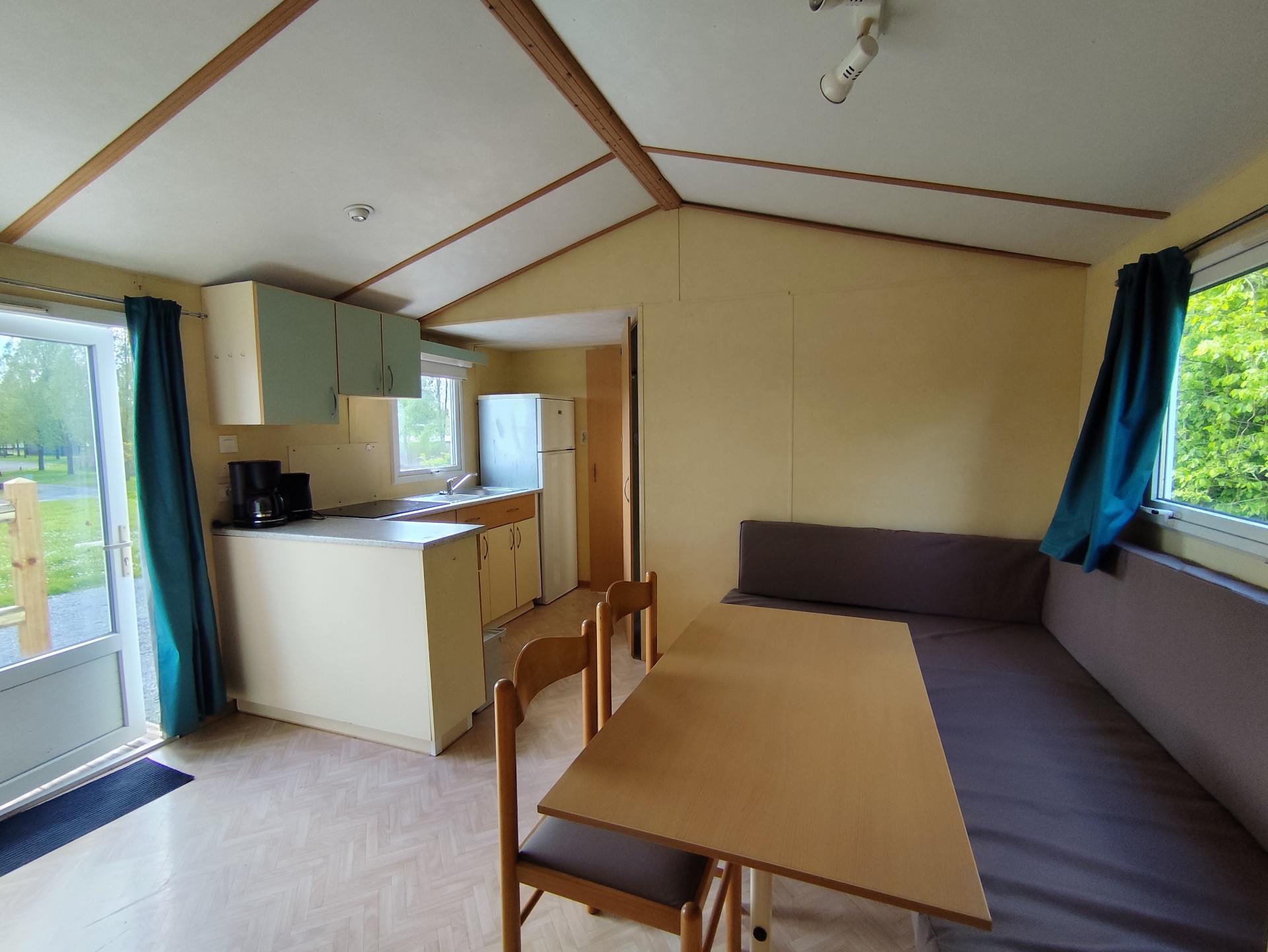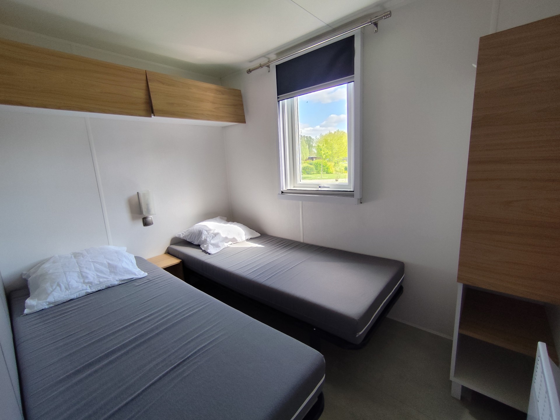 Mobile home 4 single bed : High Season 425€/Week-90€/Night Low Season 340€/Week-72€/Night